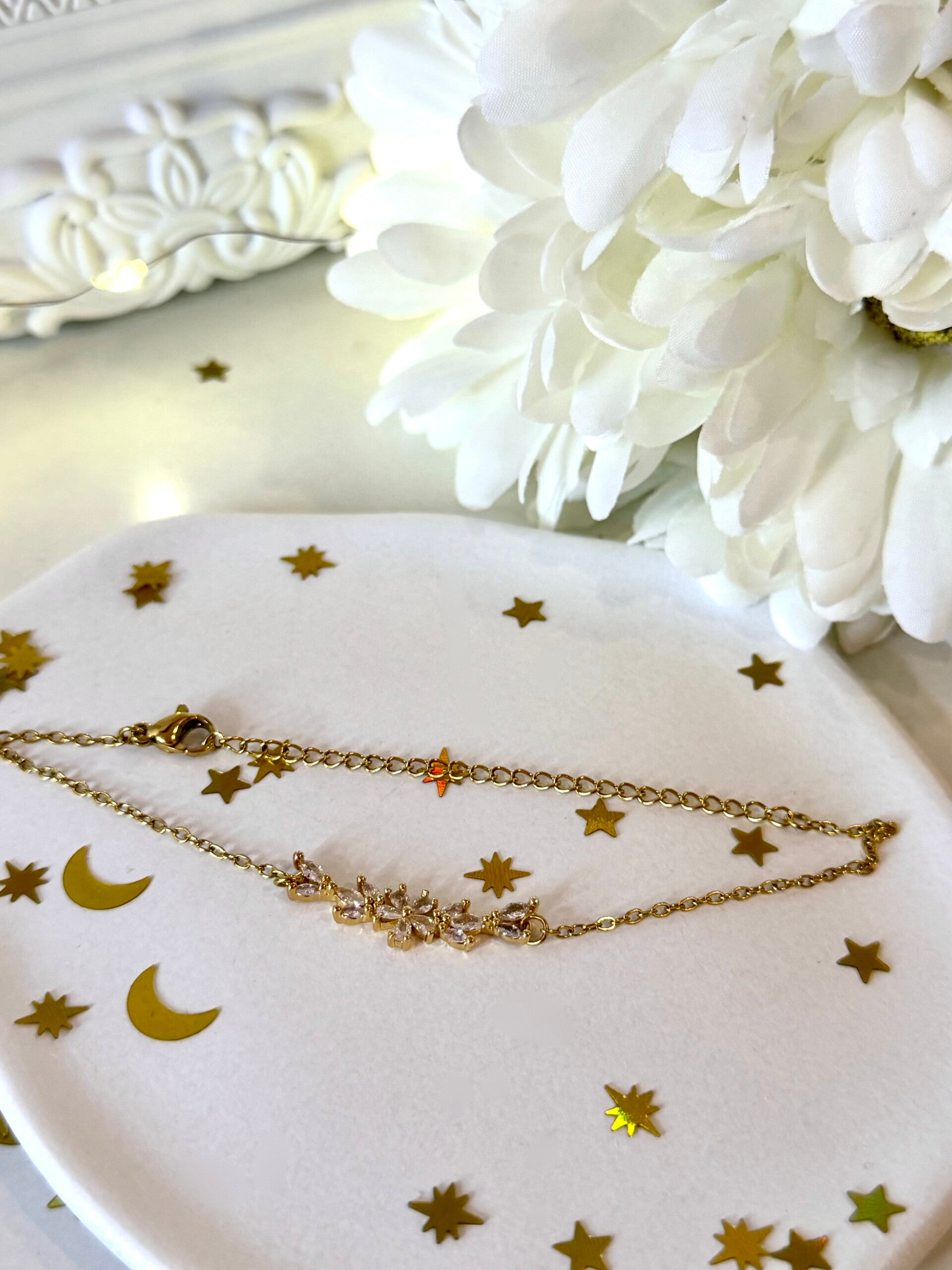 Verleihe deinem Look einen Hauch von zeitloser Eleganz mit unserem Zirkon Blumen Armband. Dieses feine Schmuckstück besticht durch sein zartes Blumen-Design, das mit funkelnden Zirkonia-Steinen besetzt ist und feminine Raffinesse ausstrahlt.