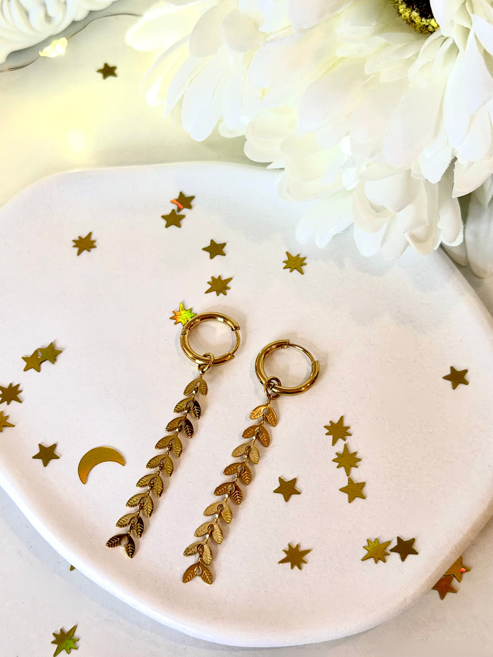 Diese lässigen Quastenblatt-Ohrringe aus hochwertigem Edelstahl sind in zwei stilvollen Farbvarianten erhältlich – warmes Gold und kühles Silber – und bringen mit ihrem verspielten Blatt-Design eine moderne Leichtigkeit in Deinen Schmuckalltag.