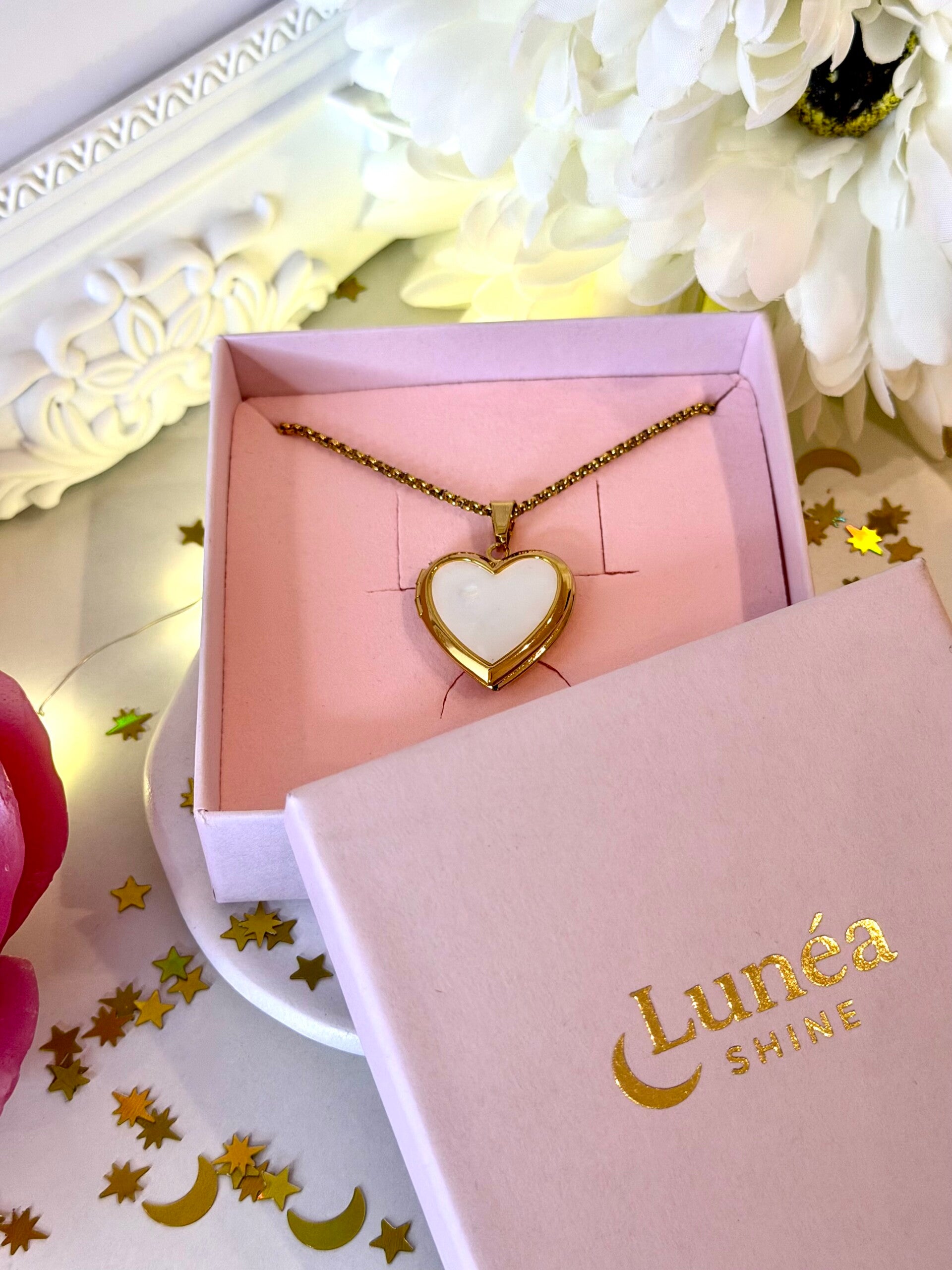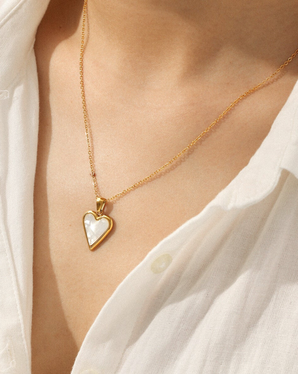 - Form: Herz-Symbol mit Shell-Einsatz (Muschel-Optik) im Anhänger.