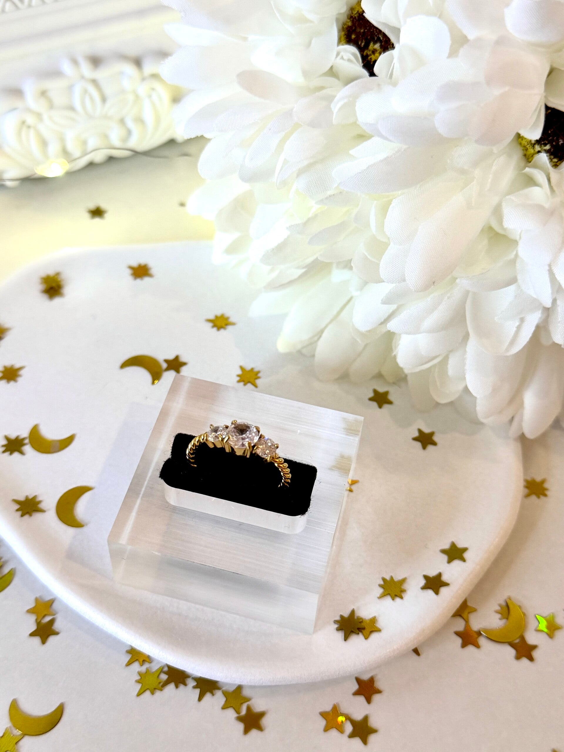 Dank der zarten Form und der glänzenden Akzente entsteht ein Look, der zugleich feminin und modern wirkt. Der Ring ist leicht und angenehm zu tragen – perfekt, um deinen Stil subtil zu unterstreichen und dabei nicht überladen zu wirken.