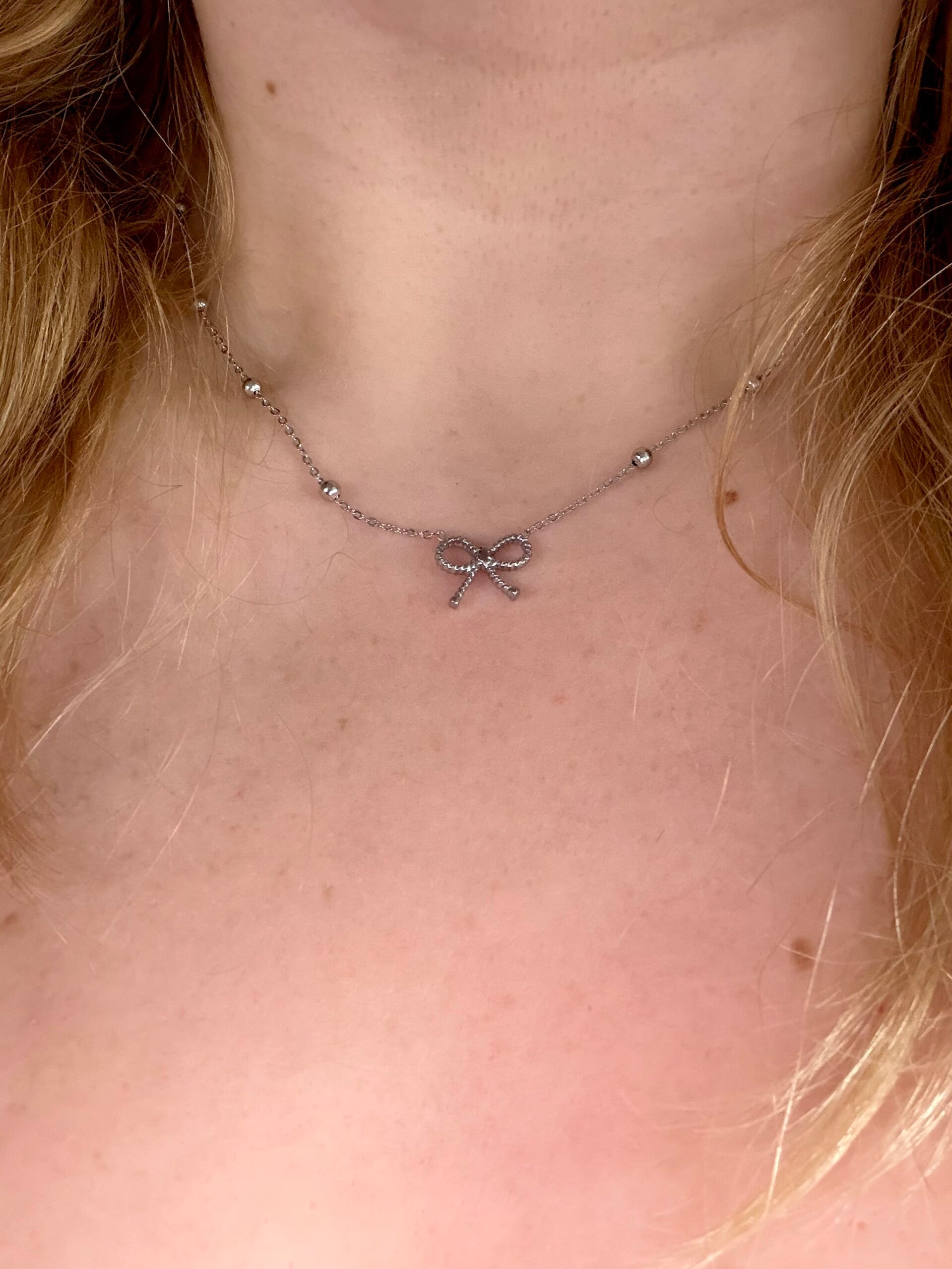Stell Dir vor, wie die filigrane Schleife sanft Dein Dekolleté umspielt – ein Symbol für Zuneigung, Verspieltheit und unvergängliche Eleganz. Sie ist perfekt für Dich, wenn Du klassische Schönheit mit einem modernen Twist liebst.