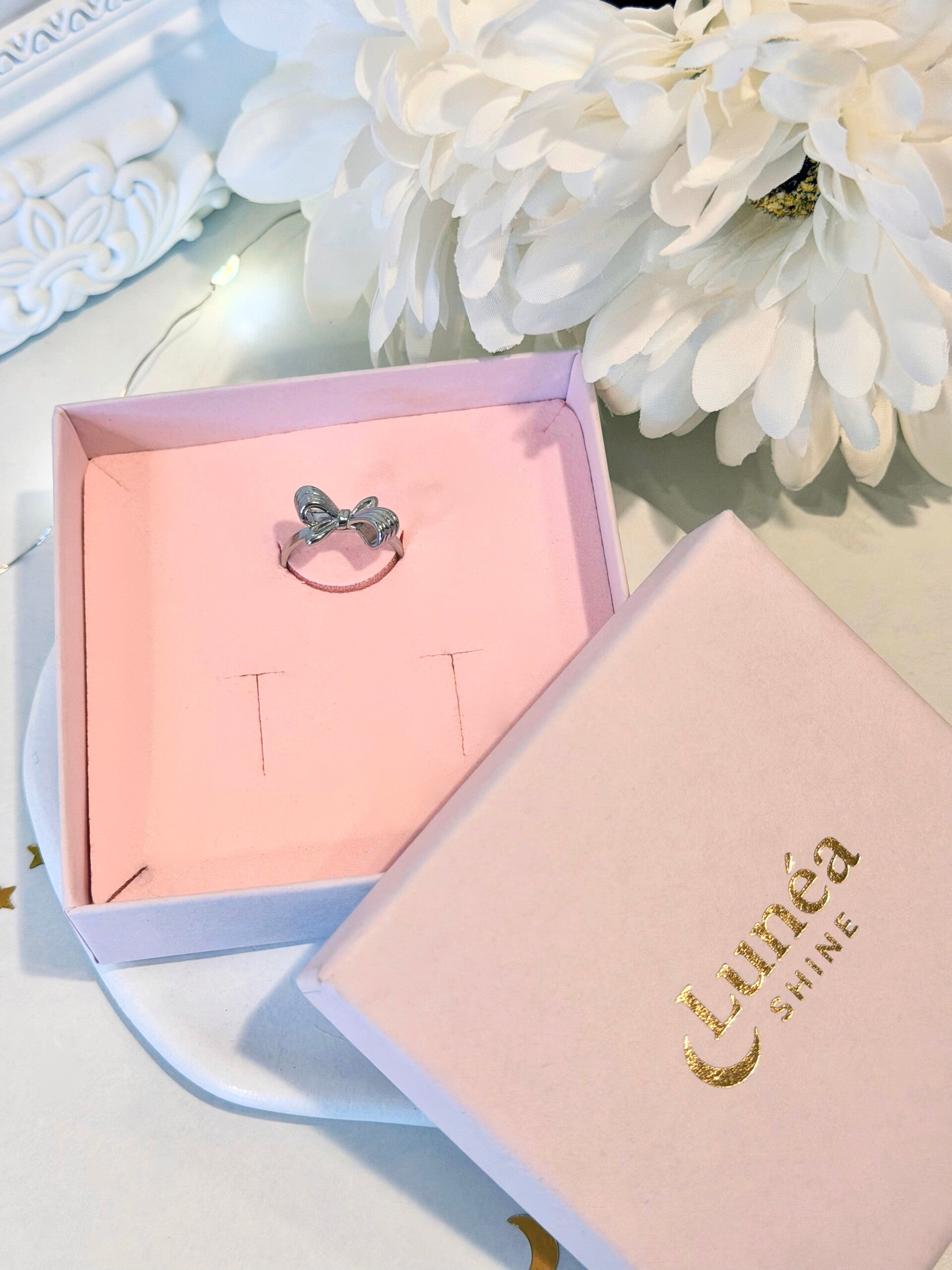 Lass Dich von einem Schmuckstück verzaubern, das pure Romantik und modernes Design in sich vereint: Dieser silberfarbene Edelstahl‑Ring mit umgekehrter Schleife ist das perfekte Accessoire für Dich oder einen besonderen Menschen. Er bringt spielerische Leichtigkeit an Deinen Finger und setzt ein filigranes Statement für zeitlosen Stil.
