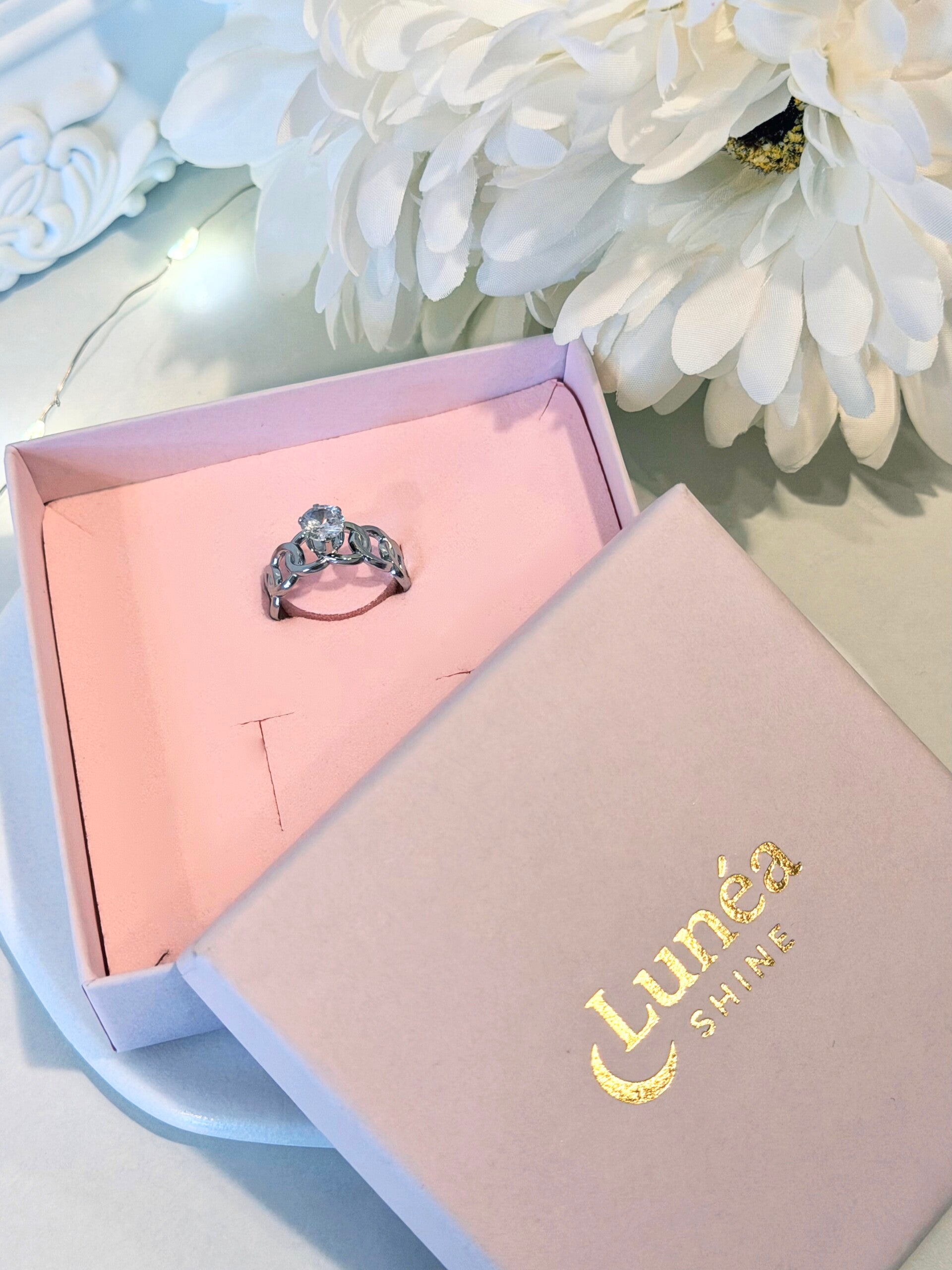 Lass dein Herz funkeln mit dem „Forever Sparkle“ Ring – einem Schmuckstück, das Eleganz, Romantik und zeitlosen Stil perfekt vereint. Der funkelnde Zirkonia-Edelstein zieht alle Blicke auf sich und lässt jeden Moment magisch wirken. Ob als besonderes Geschenk für die Liebste, als Verlobungsring-Alternative oder einfach, um dir selbst ein Funkeln zu schenken – dieser Ring verleiht jedem Augenblick eine romantische Note.